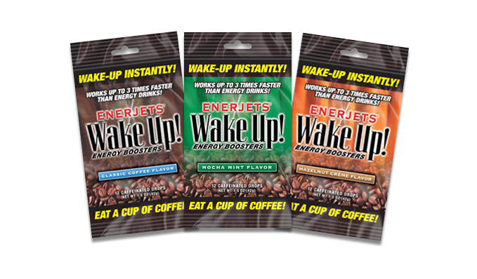 PLEASE NOTE: HAZELNUT CREME, CLASSIC COFFEE IS AVAILABLE AND MOCHA MINT FLAVORS ARE ON BACKORDER. Wake Up Fast. Enerjets are a great tasting lozenge that can be eaten anywhere. No more coffee drinking or pill taking. . A gentle wake up for over 50 years. No uncomfortable jolt. Each Enerjets serving has about as much caffeine as one cup of coffee, without the cup! Just pop a great tasting Hazelnut Creme flavored lozenge in your mouth and experience a gentle wake up and restored mental alertness. If you lead an active lifestyle or just need a little pep in your step… ENERJETS® will give you that extra edge!